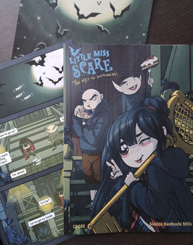 Little Miss Scare – The Key to Happiness Comic Book (full color). Free shipping within Canada or USA. Shipping takes 3-5 weeks and shipping options are limited to Canada or USA for now.