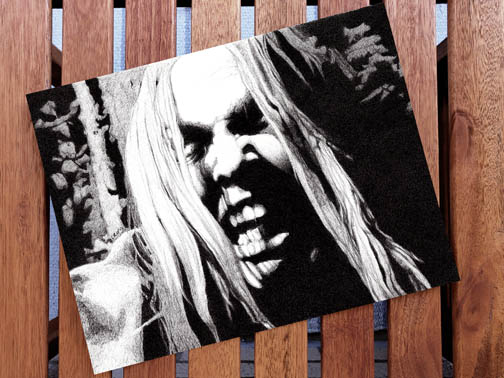 Leatherface – Black Print, 8.5 x 11 inches. Free shipping within Canada or USA. Shipping takes 3-5 weeks and shipping options are limited to Canada or USA for now.