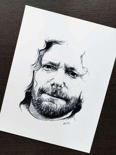 Phil BW – Black Print, 8.5 x 11 inches. Free shipping within Canada or USA. Shipping takes 3-5 weeks and shipping options are limited to Canada or USA for now.
