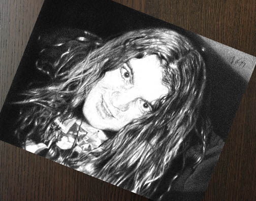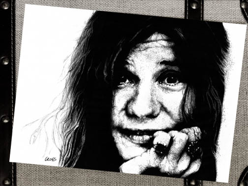 Janis J. – Dark Black Print, 8.5 x 11 inches. Free shipping within Canada or USA. Shipping takes 3-5 weeks and shipping options are limited to Canada or USA for now.