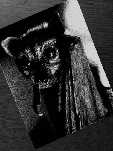 The Bat – Black Print, 8.5 x 11 inches. Free shipping within Canada or USA. Shipping takes 3-5 weeks and shipping options are limited to Canada or USA for now.