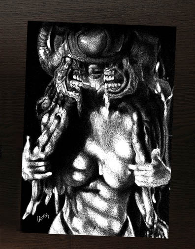 DB – Oderus Urungus – Black Print, 8.5 x 11 inches. Free shipping within Canada or USA. Shipping takes 3-5 weeks and shipping options are limited to Canada or USA for now.