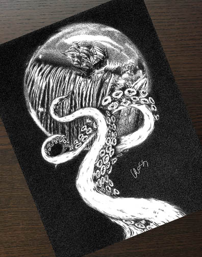 Nosferatu MS – Dark Black Print, 8.5 x 11 inches. Free shipping within Canada or USA. Shipping takes 3-5 weeks and shipping options are limited to Canada or USA for now.