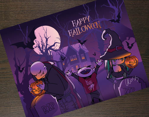 Feelings Halloween – Colour Print, 8.5 x 11 inches. Free shipping within Canada or USA. Shipping takes 3-5 weeks and shipping options are limited to Canada or USA for now.