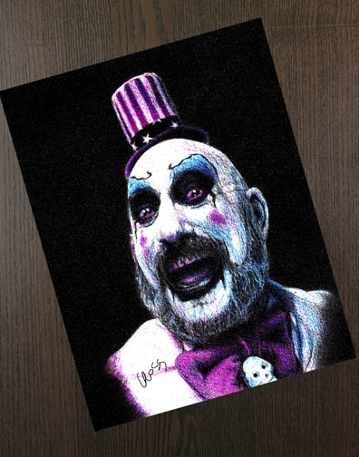 Captain Spaulding – Colour Print, 8.5 x 11 inches. Free shipping within Canada or USA. Shipping takes 3-5 weeks and shipping options are limited to Canada or USA for now.