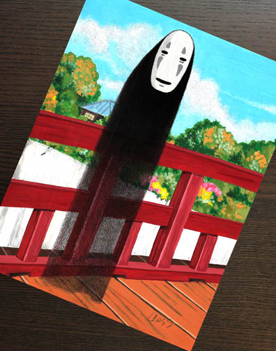NoFace Spirited Away – Colour Print, 8.5 x 11 inches. Free shipping within Canada or USA. Shipping takes 3-5 weeks and shipping options are limited to Canada or USA for now.